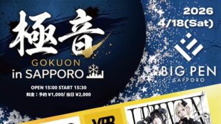 イベント 4/18 極音 in Sapporo 【札幌2days出演詳細のお知らせ📢】◾️日程:4月18日(土)◾️会場:BIG PEN SAPPORO◾️時間:OPEN 15:00/START 15:30◾️料金:予約 ¥1,000/当日 ¥2,000◾️出演WONDERWHITE/L... 2026.04.04 お知らせイベント